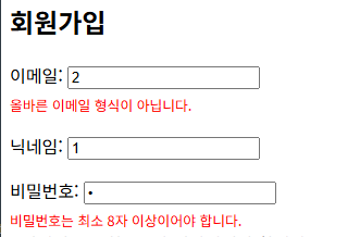 - 입력된 값이 있고 이메일 형식이 아니면 오류 메시지를 표시합니다.